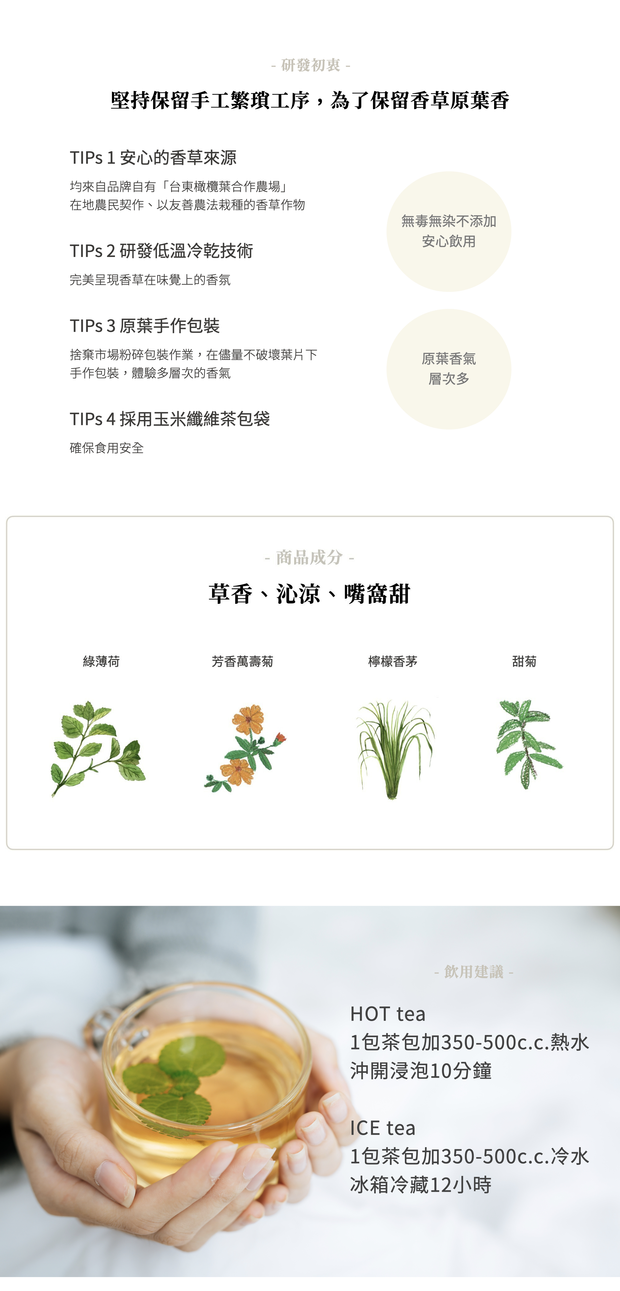 成 分 │ 綠薄荷、檸檬香茅、芳香萬壽菊、甜菊