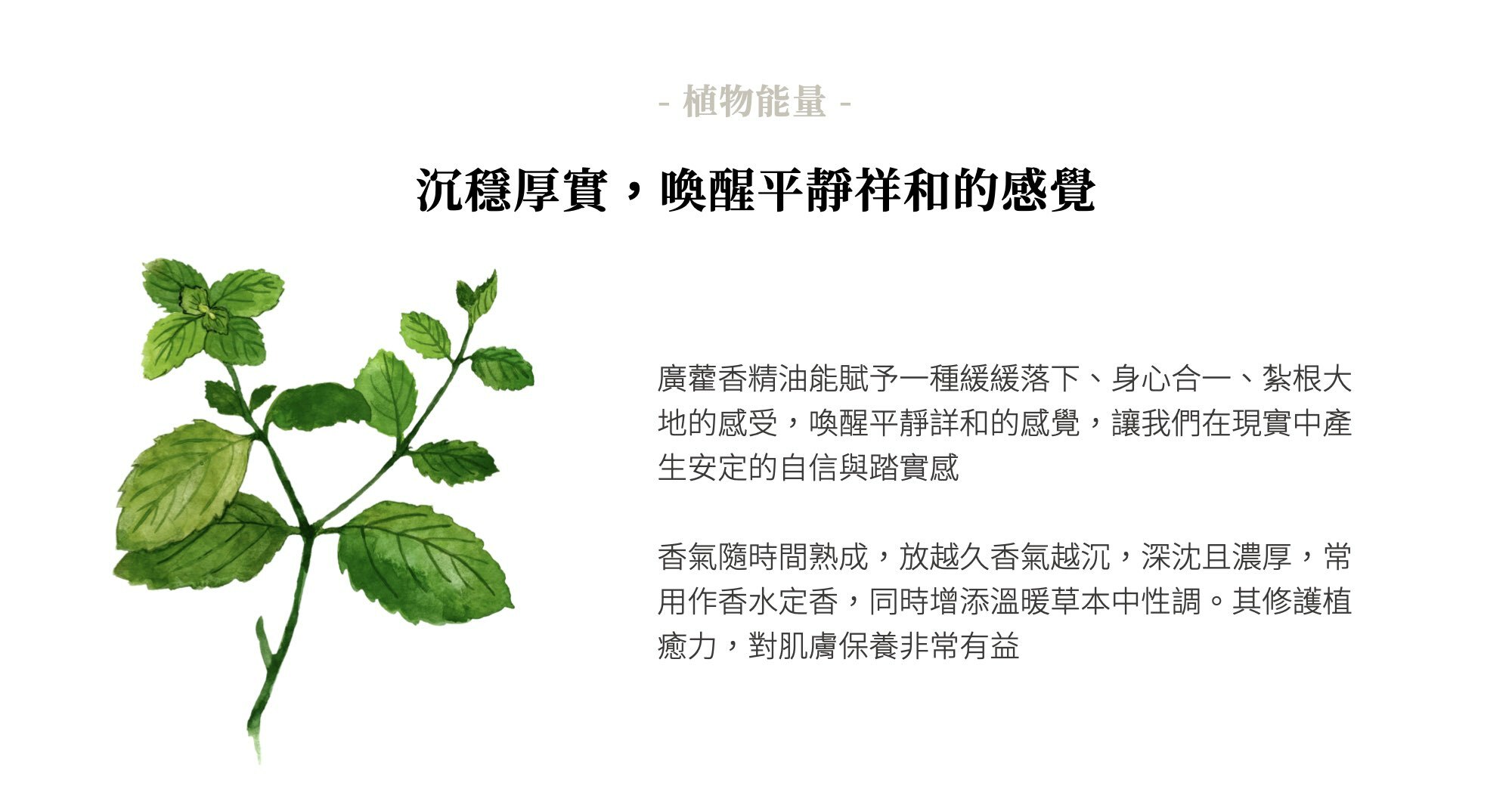 成 分 │ 100% 廣藿香精油 Pogostemon cablin