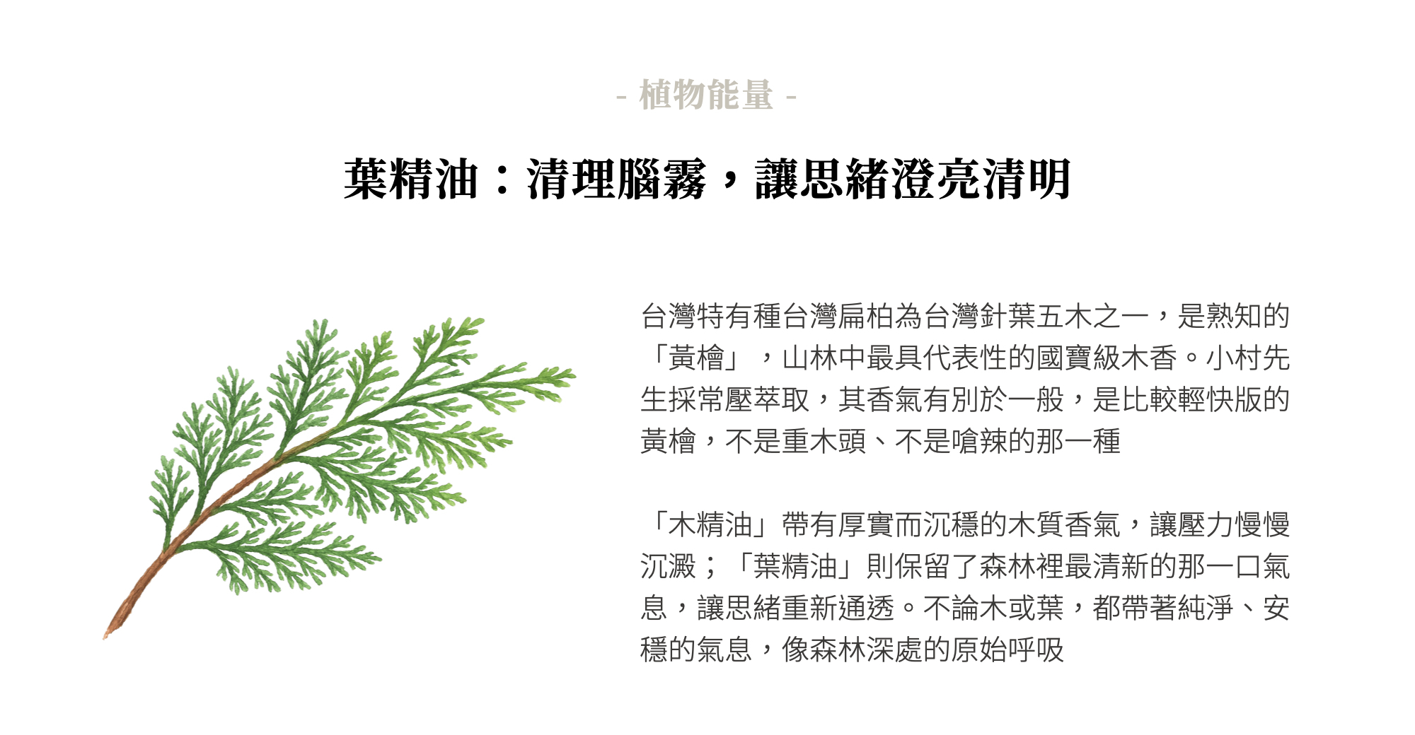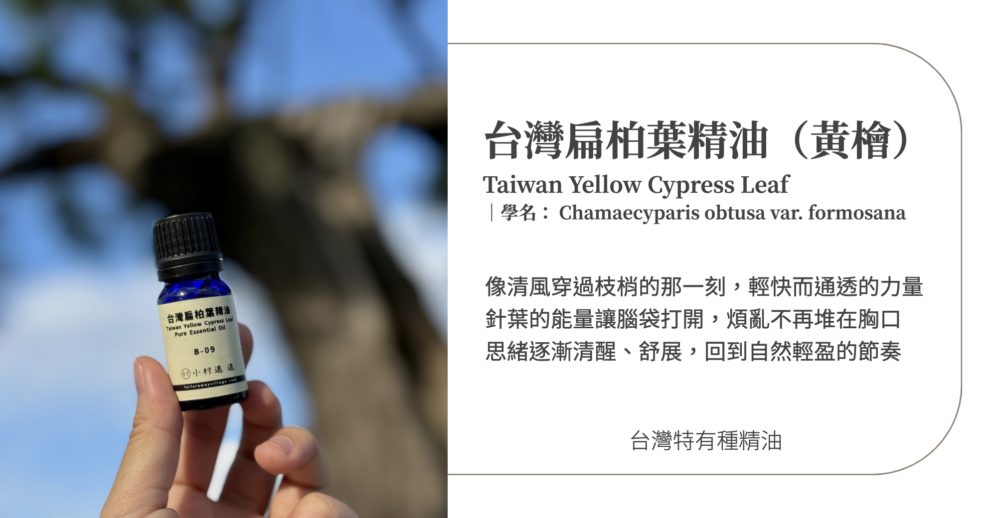 成 分 │ 100%台灣扁柏葉精油(黃檜) Chamaecyparis obtusa var. formosana